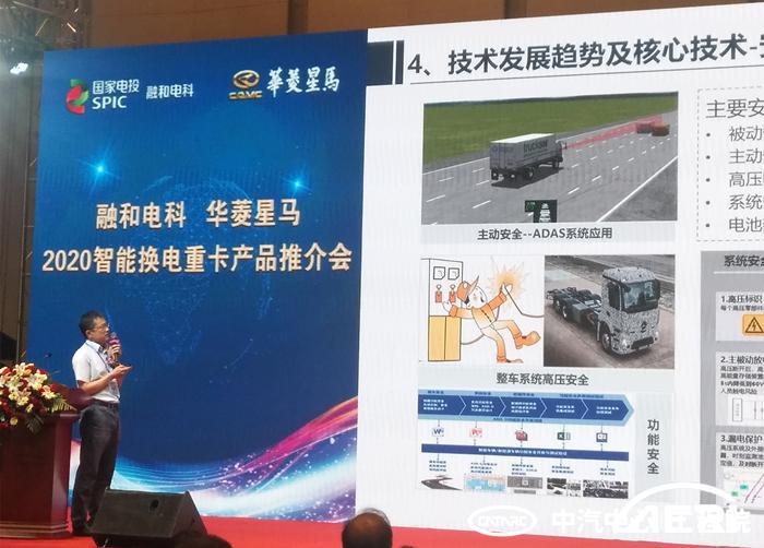 會(huì )議中,高繼東以華菱星馬首席專(zhuān)家的身份從電動(dòng)重卡的應用場(chǎng)景、國內外電動(dòng)重卡最新發(fā)展動(dòng)態(tài)等方面指出現階段電動(dòng)重卡在國內具有突出的發(fā)展優(yōu)勢、電動(dòng)重卡將成為今后城市減排的重要舉措。隨后高繼東對電動(dòng)重卡新技術(shù)的發(fā)展趨勢進(jìn)行研判,從節能技術(shù)、安全化技術(shù)、集成化技術(shù)、換電技術(shù)、智能駕駛技術(shù)等技術(shù)領(lǐng)域的技術(shù)難點(diǎn)以及發(fā)展方向進(jìn)行了深度講解。