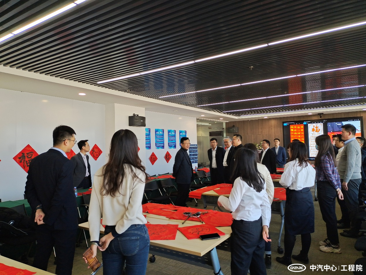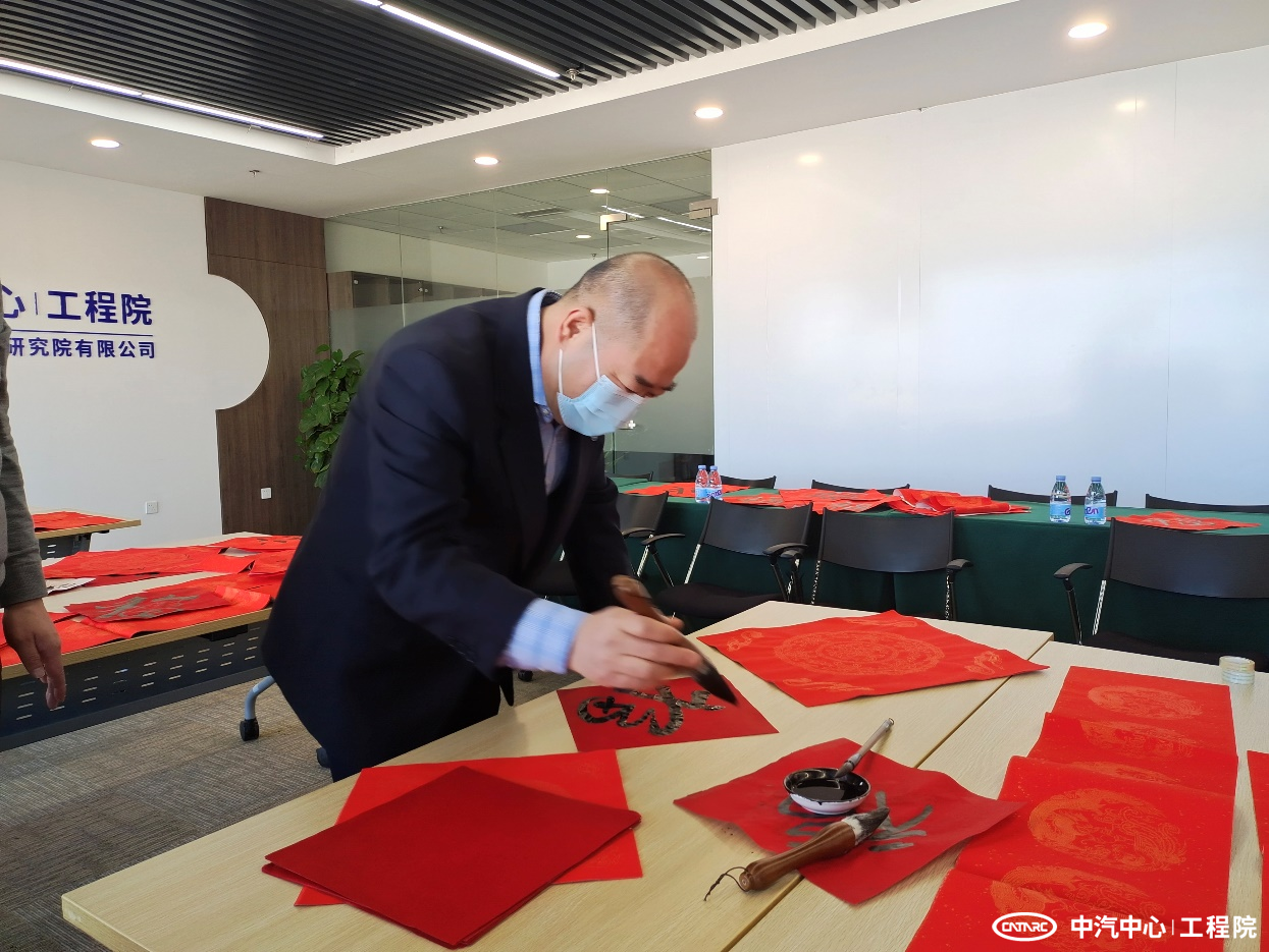 1月28日,正值虎年春節到來(lái)之際,工程院分會(huì )組織員工現場(chǎng)潑墨,題寫(xiě)春聯(lián),用對聯(lián)裝點(diǎn)辦公區域,帶來(lái)了一份節日的喜氣。中汽中心黨委書(shū)記、董事長(cháng)、總經(jīng)理安鐵成來(lái)到活動(dòng)現場(chǎng)慰問(wèn)工程院干部職工。中汽中心職工董事、工會(huì )主席文寶忠現場(chǎng)揮毫題“福”,大家在現場(chǎng)紛紛打開(kāi)AR集五福,沾沾來(lái)自文主席的“敬業(yè)福”。