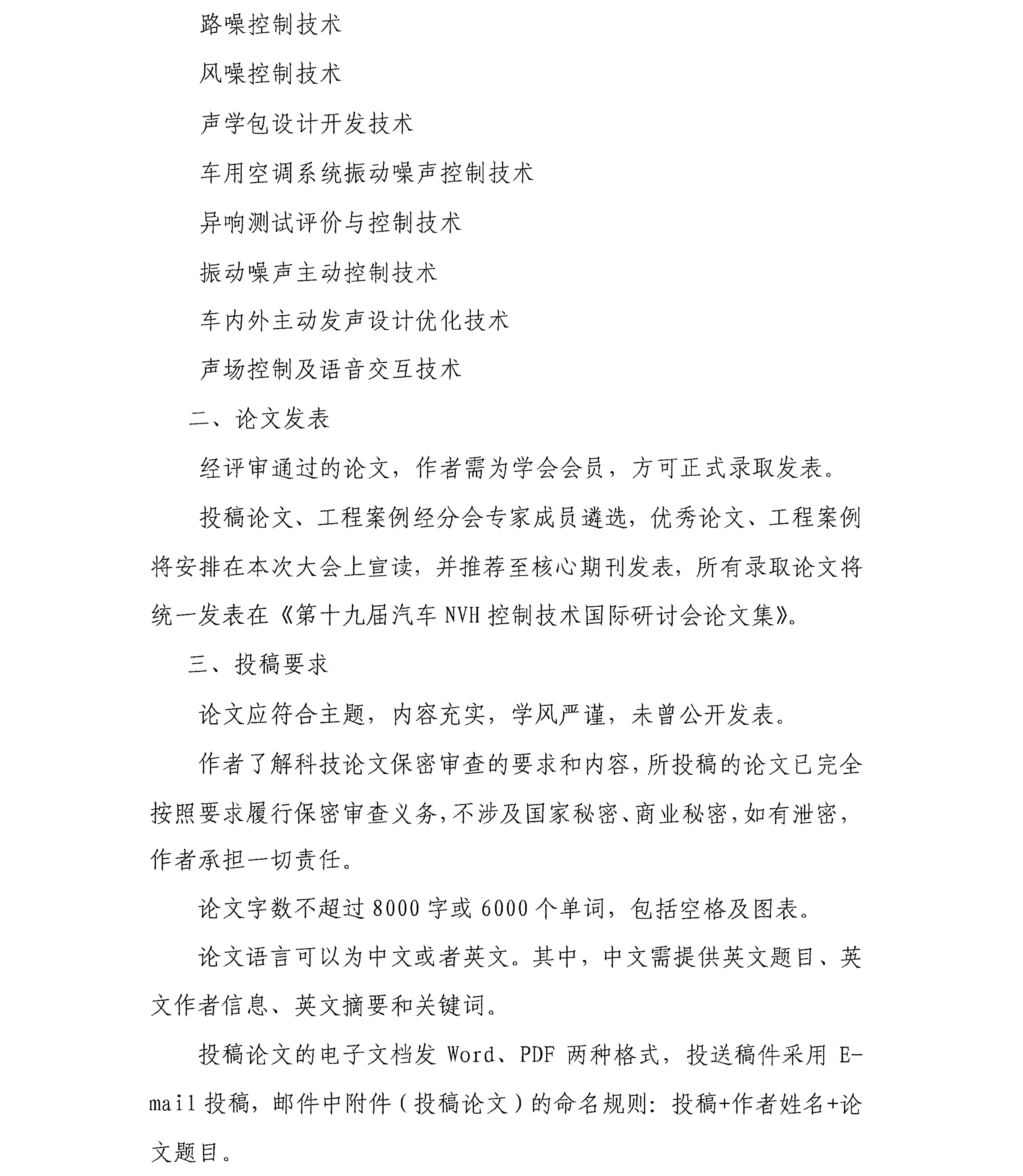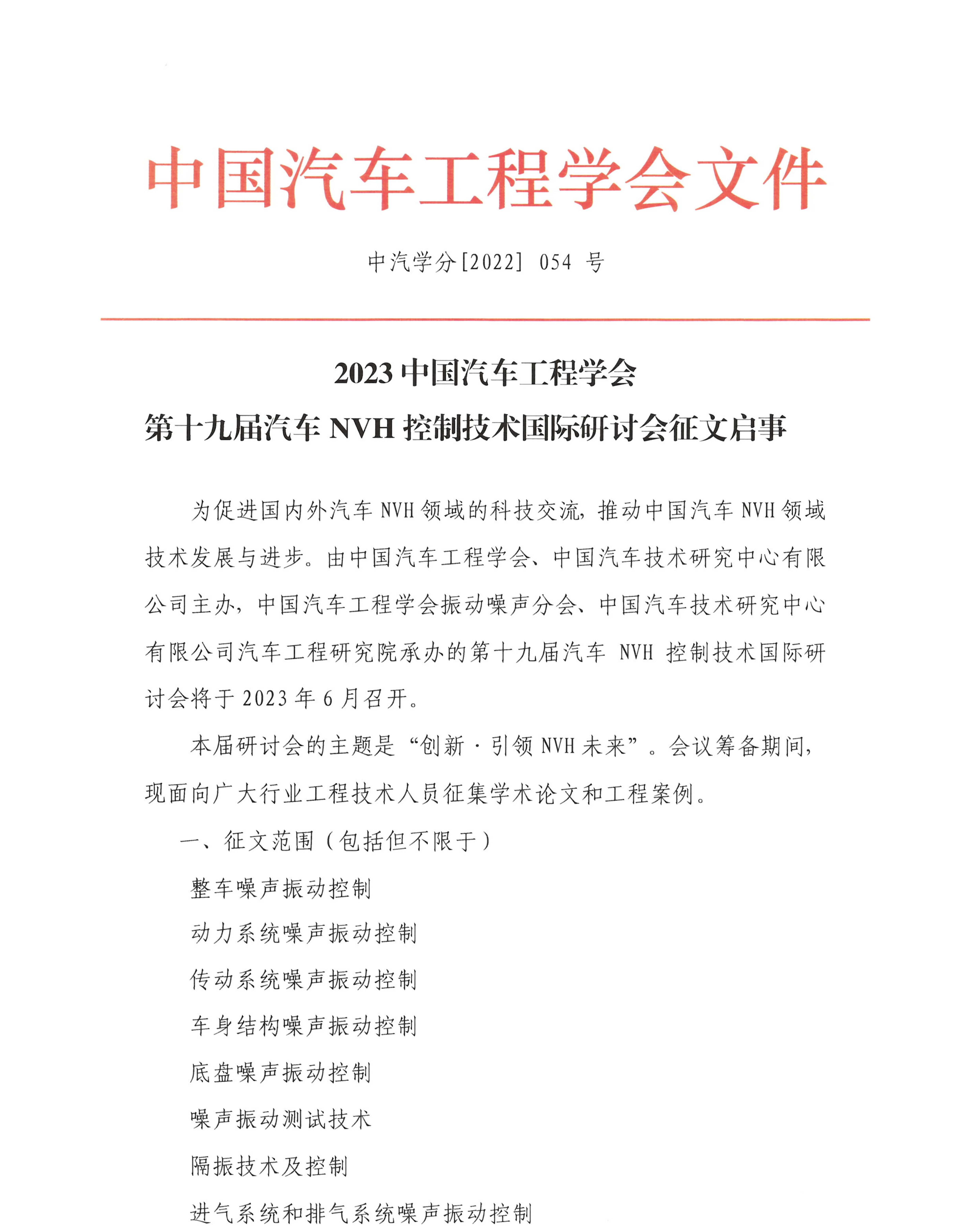 第十九屆汽車(chē)NVH控制技術(shù)國際研討會(huì )會(huì )議征文啟事
