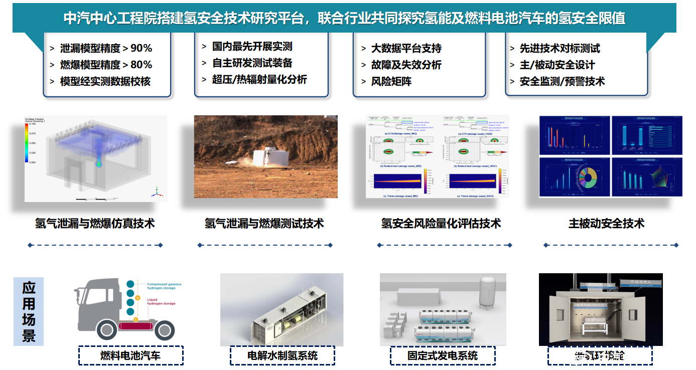 中汽中心工程院在汽車(chē)安全領(lǐng)域已有十余年技術(shù)積淀,服務(wù)于氫能產(chǎn)業(yè)應用發(fā)展,我們致力于搭建氫安全技術(shù)研究平臺,開(kāi)展對氫氣泄漏與燃爆的測試與仿真技術(shù)研究,構建符合氫能及燃料電池汽車(chē)應用場(chǎng)景的氫安全風(fēng)險量化評估體系。