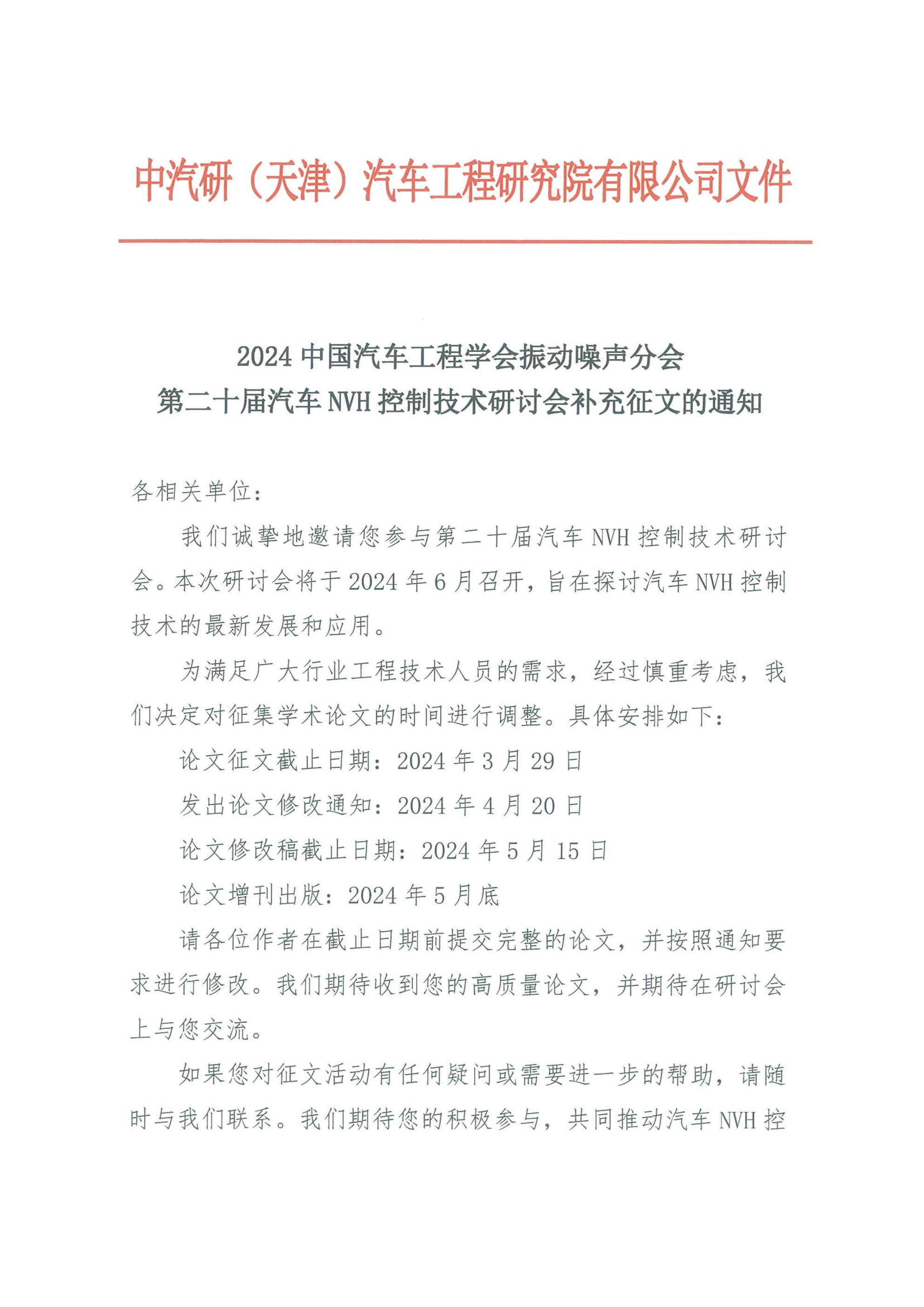 2024中國汽車(chē)工程學(xué)會(huì )振動(dòng)噪聲分會(huì ) 第二十屆汽車(chē)NVH控制技術(shù)研討會(huì )補充征文的通知
