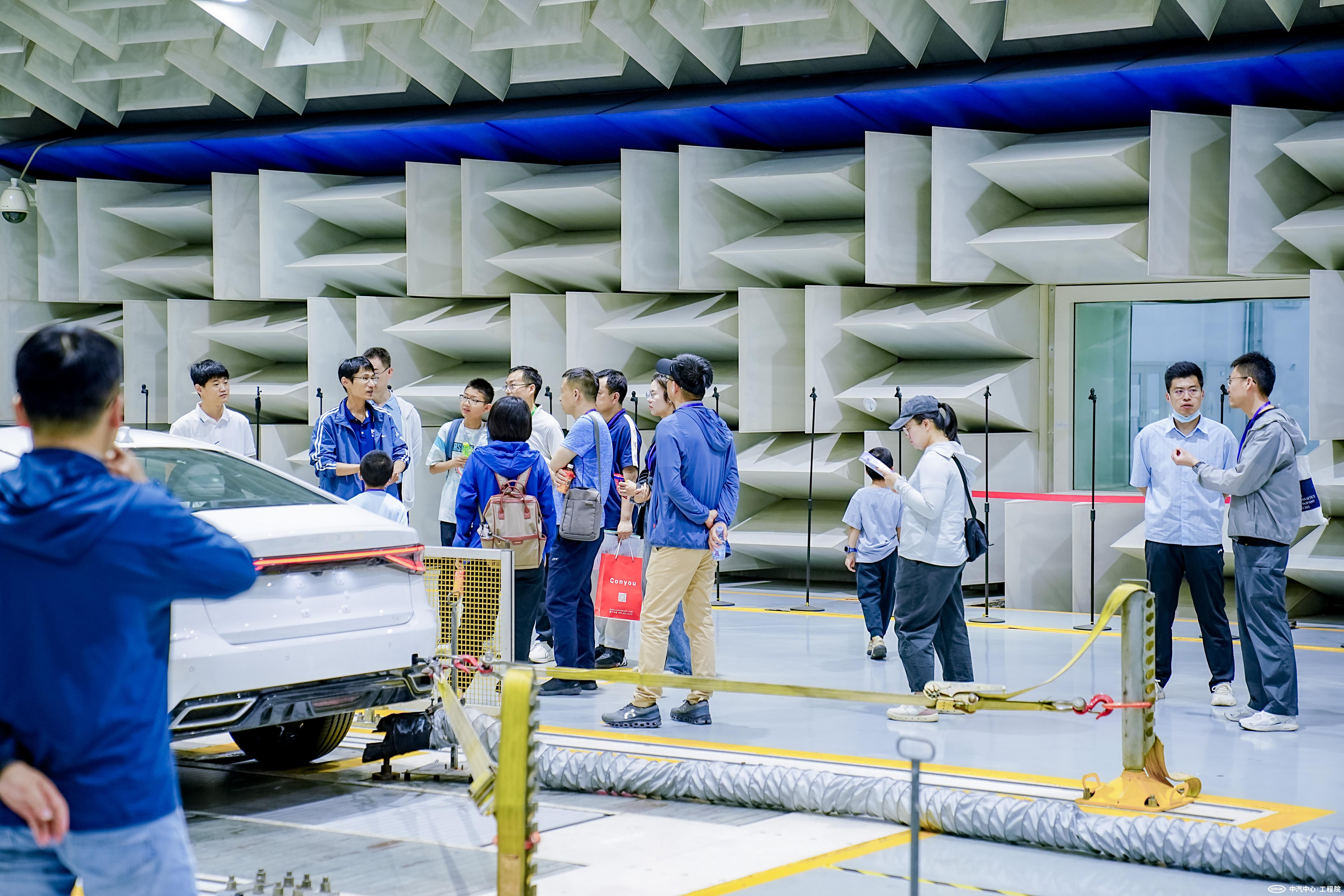本次開(kāi)放日重點(diǎn)打造了NVH實(shí)驗室沉浸式體驗項目,家屬們通過(guò)專(zhuān)業(yè)設備親身感受路噪主動(dòng)降噪技術(shù)的神奇效果,在聲場(chǎng)復現技術(shù)中體驗影院級環(huán)繞音效。為保障體驗品質(zhì),整車(chē)半消聲實(shí)驗室和觸聽(tīng)實(shí)驗室的相關(guān)技術(shù)團隊提前開(kāi)展設備調試與場(chǎng)景搭建,10余名工程師在崗,為活動(dòng)現場(chǎng)提供全流程引導服務(wù)。