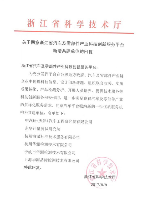 2017年8月9日,中汽中心汽車(chē)工程研究院(以下稱(chēng)“工程院”)獲批浙江省汽車(chē)及零部件產(chǎn)業(yè)科技創(chuàng )新平臺共建單位,浙江省內企業(yè)找工程院做研發(fā)類(lèi)測試及技術(shù)服務(wù),可申請當地政府創(chuàng )新券,享受創(chuàng )新補貼。