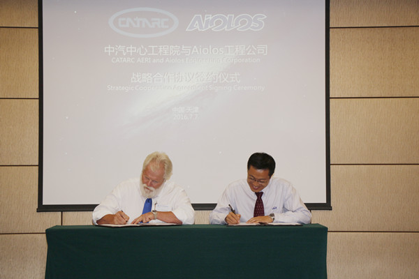 2016年7月7日,中汽中心工程院與加拿大 Aiolos Engineering 公司戰略合作協(xié)議簽約儀式在天津成功舉行。