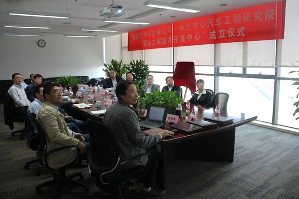 揭牌儀式前,雙方對合作歷程和未來(lái)合作方向做了深入交流。會(huì )談完畢,高繼東院長(cháng)、鮑文光董事長(cháng)代表雙方為儀式揭牌,這標志著(zhù)通過(guò)聯(lián)合工程技術(shù)開(kāi)發(fā)中心的成立,雙方今后將共同促進(jìn)、優(yōu)勢互補,提升汽車(chē)行業(yè)工程研發(fā)的強勢競爭力。