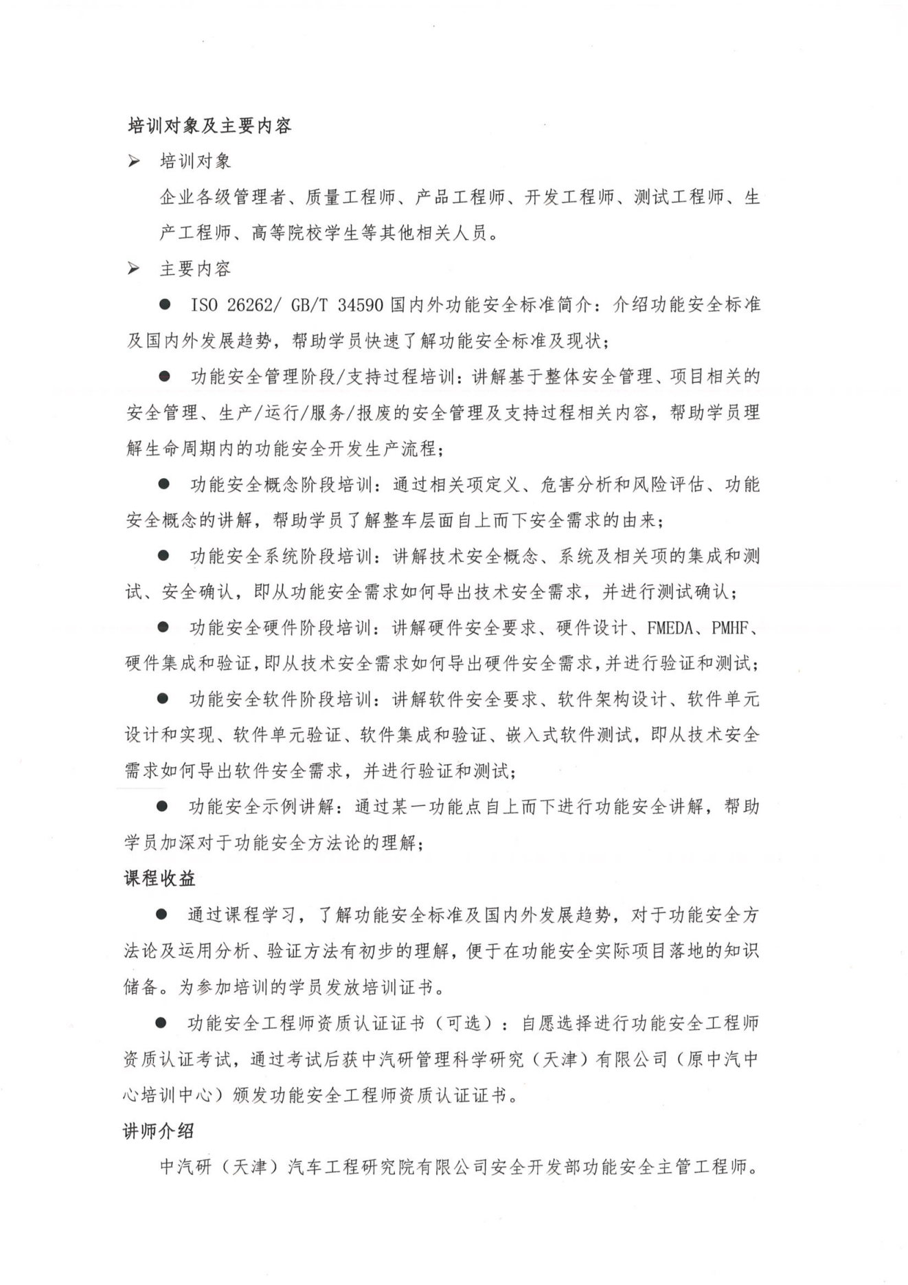 第三期道路車(chē)輛功能安全工程師公開(kāi)培訓通知
